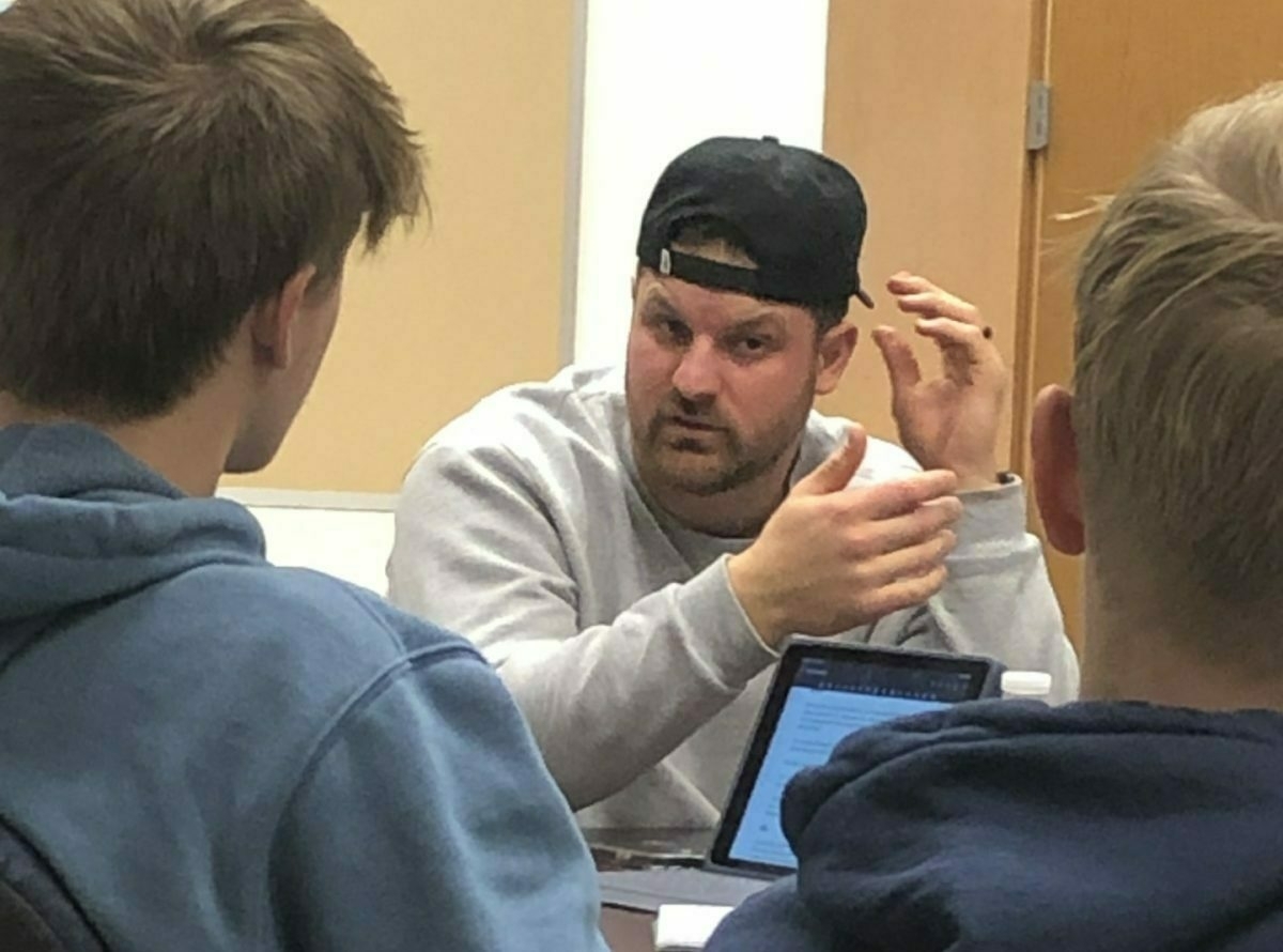 Steelers long snapper Christian Kuntz talks with students at Shaler Area HS (Eric Schott)